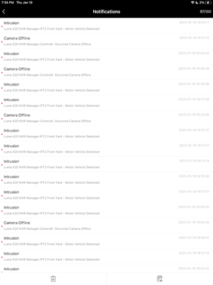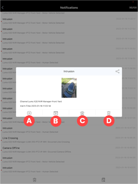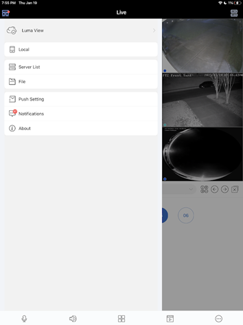 Notifications – Shows the last 99 push notifications that your Luma View app has received.