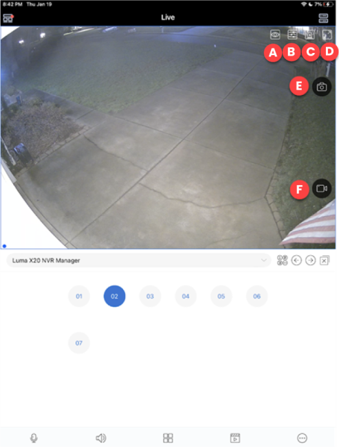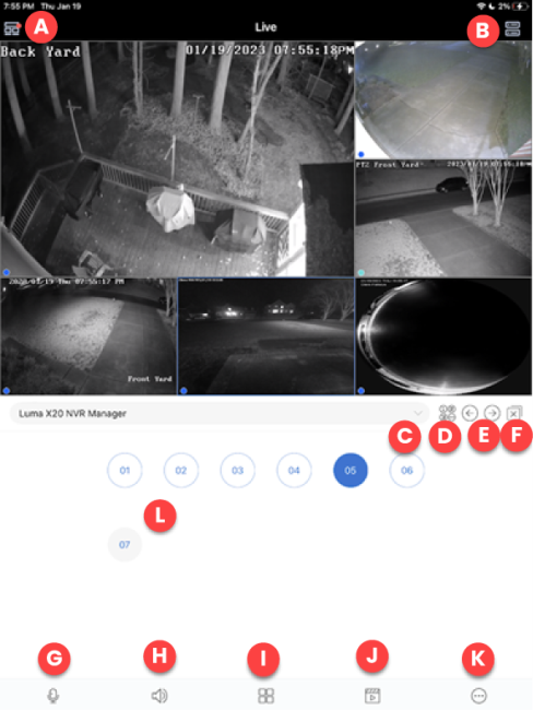 Playback – Opens the remote playback interface to view the playback for the camera currently selected.