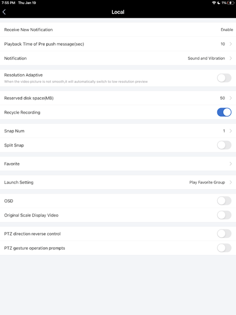 Launch setting – Set to play favorite group, play a specific device, or play last preview channels when you open the app.